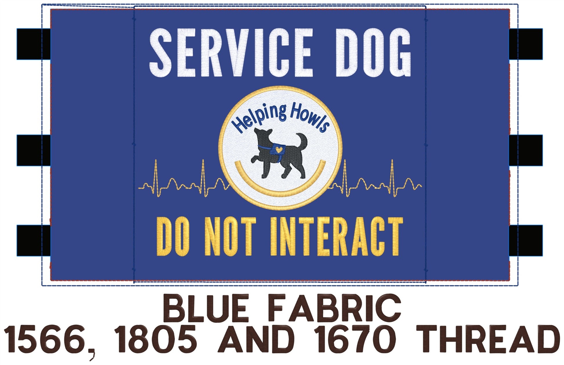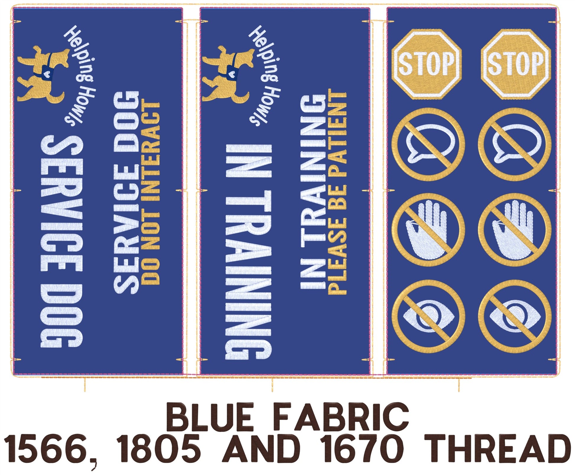 These will all be on blue fabric and the designs cannot be modified.